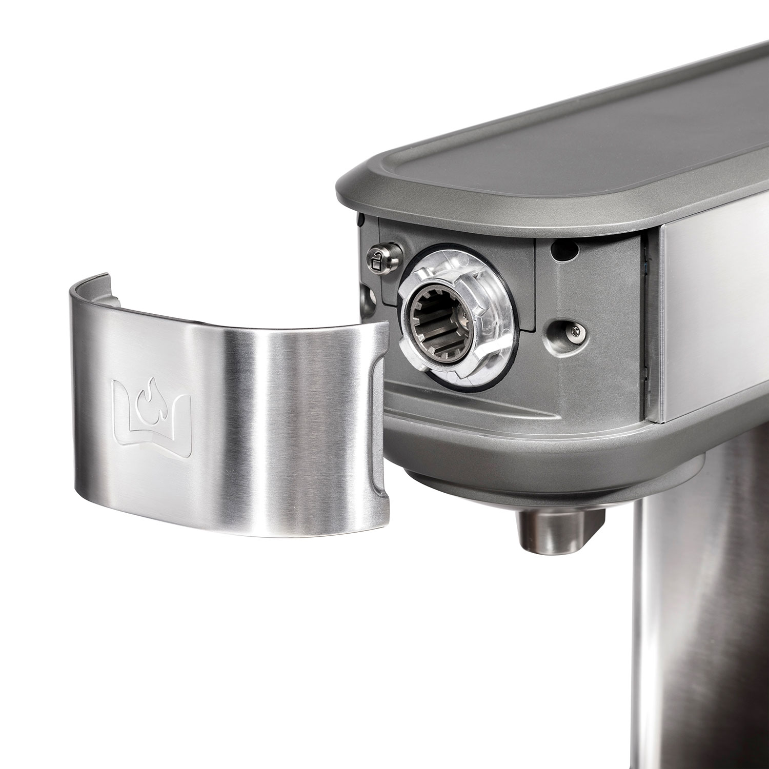Add food processing versatility, such as meat grinding, with specialty attachments (sold separately). The simplified magnetized attachment cover and locking system make switching between attachments practically effortless.