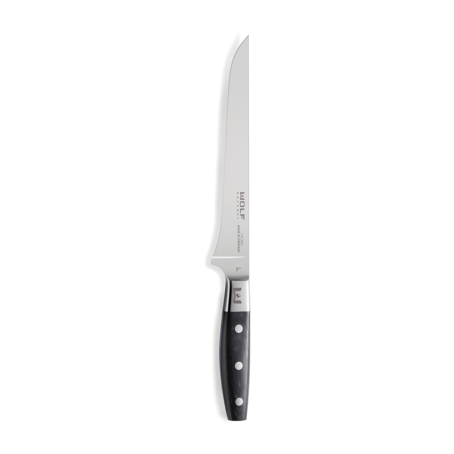 For meats, poultry, or fish, a boning knife is a must-have in the kitchen. The Wolf Gourmet boning knife has a long, slim blade to easily glide around bones or to remove silverskin, fat and cartilage.